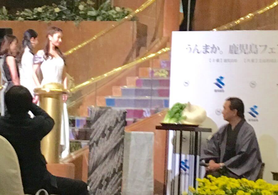 横浜シェラトンホテルで開催された鹿児島県知事と神奈川県知事コラボイベント「うんまか鹿児島フェスタ」モデル3名が本場大島紬のドレスで式典アシスト&ショーに出演。両…